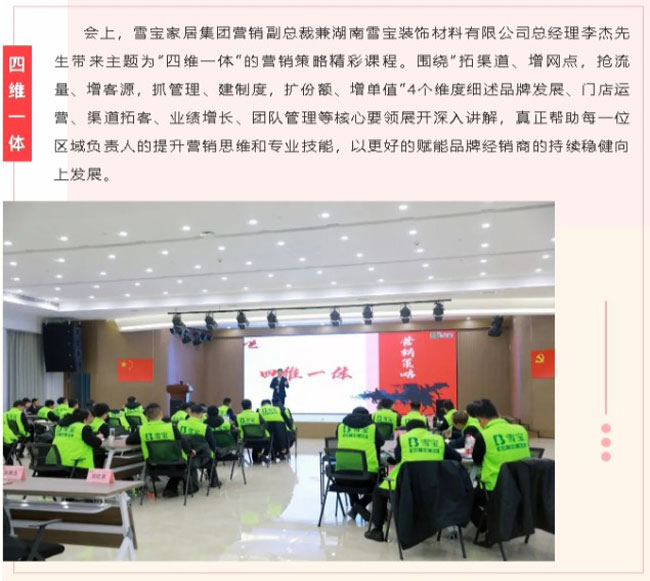 本次特訓營活動,旨在夯實基礎、深練內功,錘煉過硬本領,打造金牌之師的作戰營銷團隊,從而更好的為廣大經銷商和消費者提供系統化專業化的品牌服務。雪寶家居集團華南、華北兩大營銷中心的銷售精英們匯聚一堂,與部分企業中高層一同參與本次“春雷行動”培訓,卯足干勁,以奮進之姿開啟2023年的新征程。